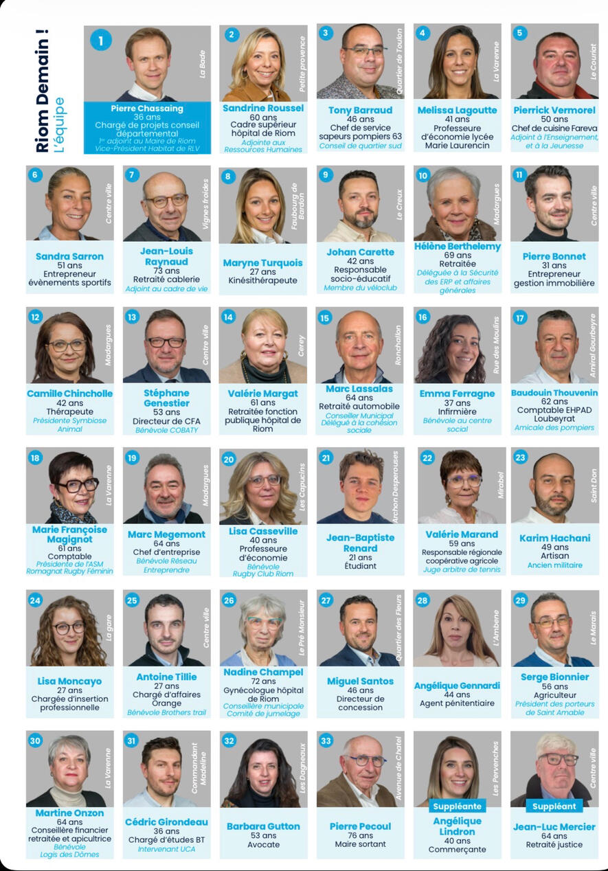 Riom Demain ! ce sont 35 Riomoises et Riomois fiers de leur ville, qui ont envie de s’engager pour vous, pour Riom